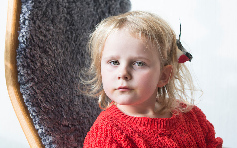 Barnbarnet Julienne var på besök och lät sig som vanligt bli fotograferad. Idag hade hon på sig sitt nya hårspänne i form av en domherre.