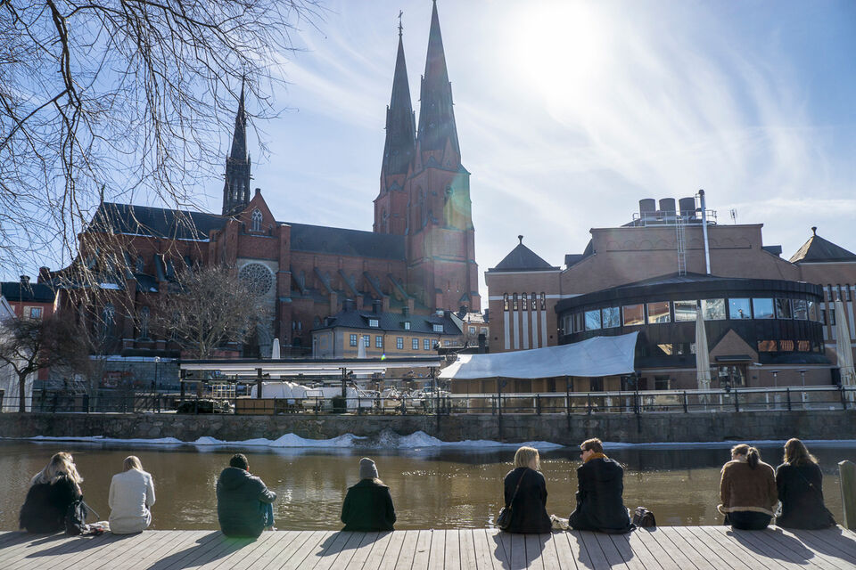 nr 2 - många som bänkar sig längs Fyrisån och njuter av ljuset och värmen