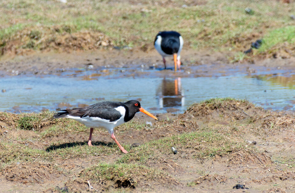 Jag träffade på ett par "morotsnäbbar" idag som vadade i dyigt grunt vatten och letade efter läckerheter