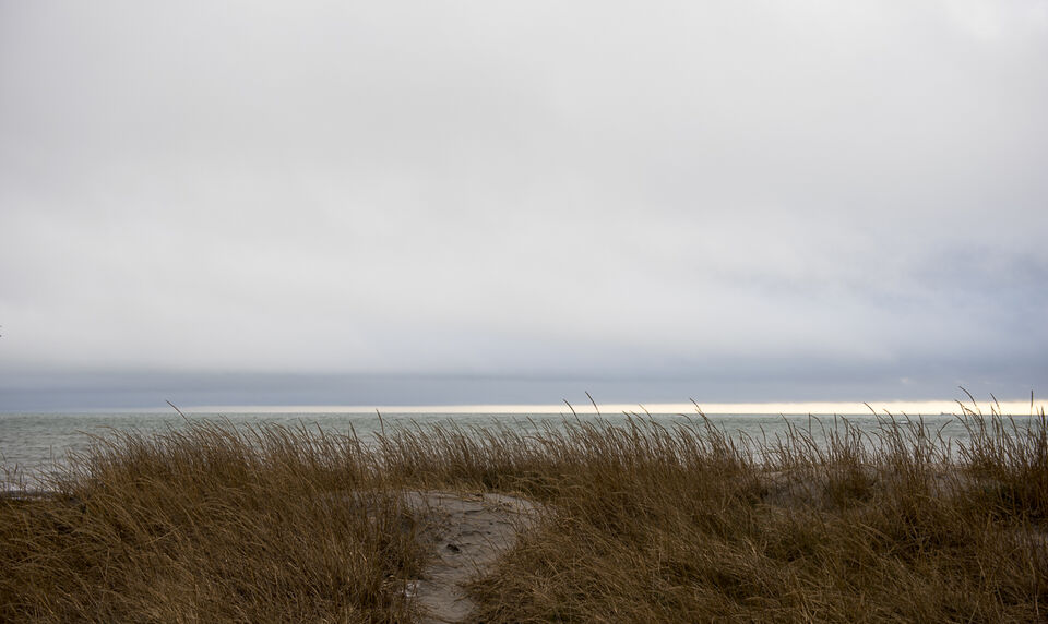 nr 1 - klitter, hav och gråblå himmel vid femte badviken på Getterön den femtonde januari