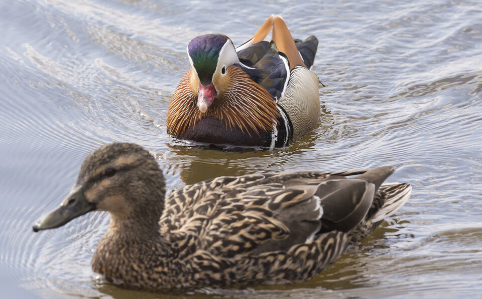 I Västerås har vi sedan några år en mandarinand som sällat sig till de andra änderna. Den har förmodligen rymt från någon park i södra Europa.