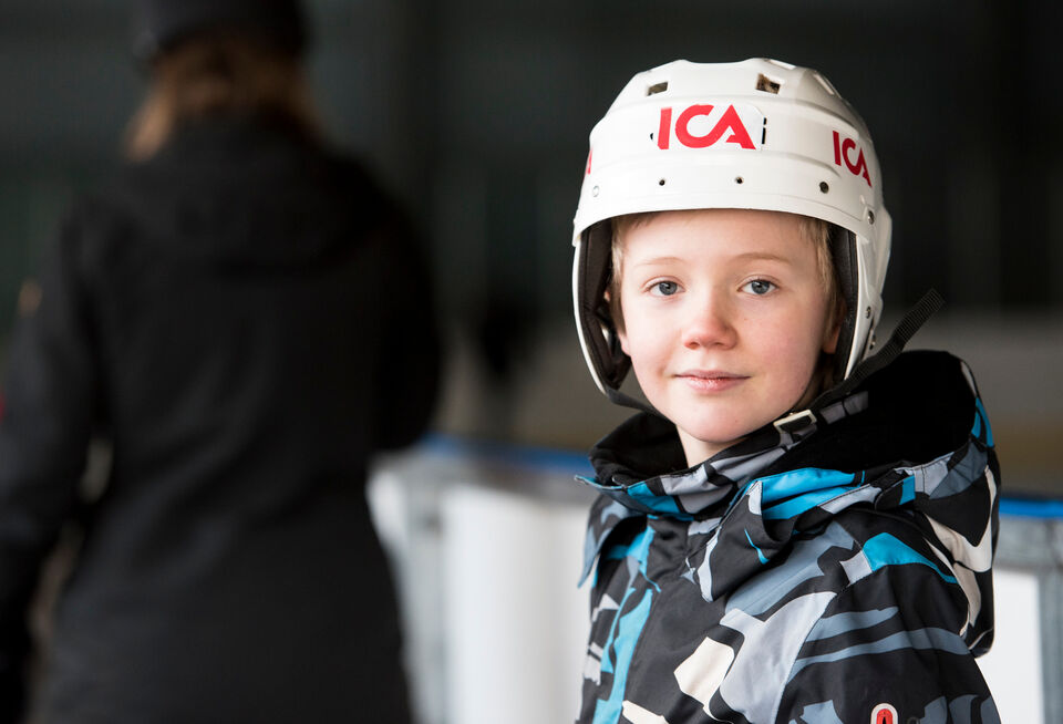 Familjen Gustavsson från Göteborg firar sin sportlovsvecka här i Västerås. Efter att ha letat fram gamla hjälmar i vårt förråd blev det skridskoåkning på Rocklunda.