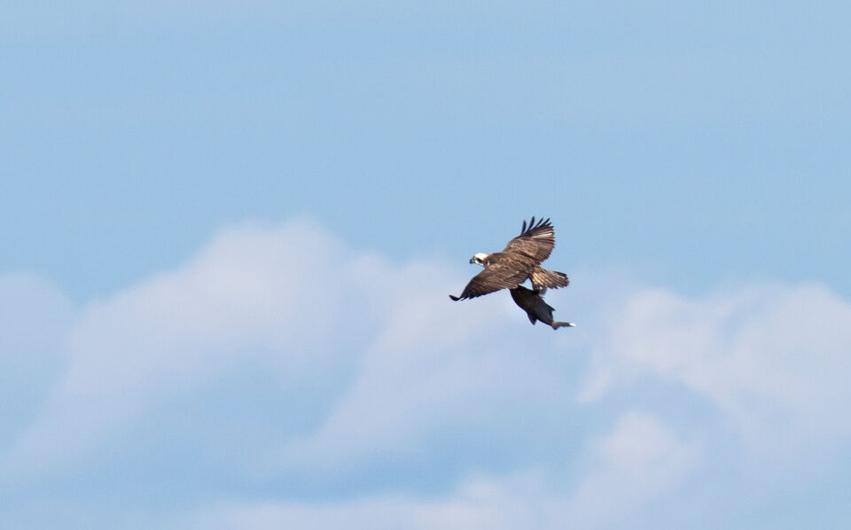 Vid dagens lunchutflykt såg jag en fiskgjuse på långt håll, så bilderna är kraftigt beskurna. Den hade haft fiskelycka så lunchen var fixad.