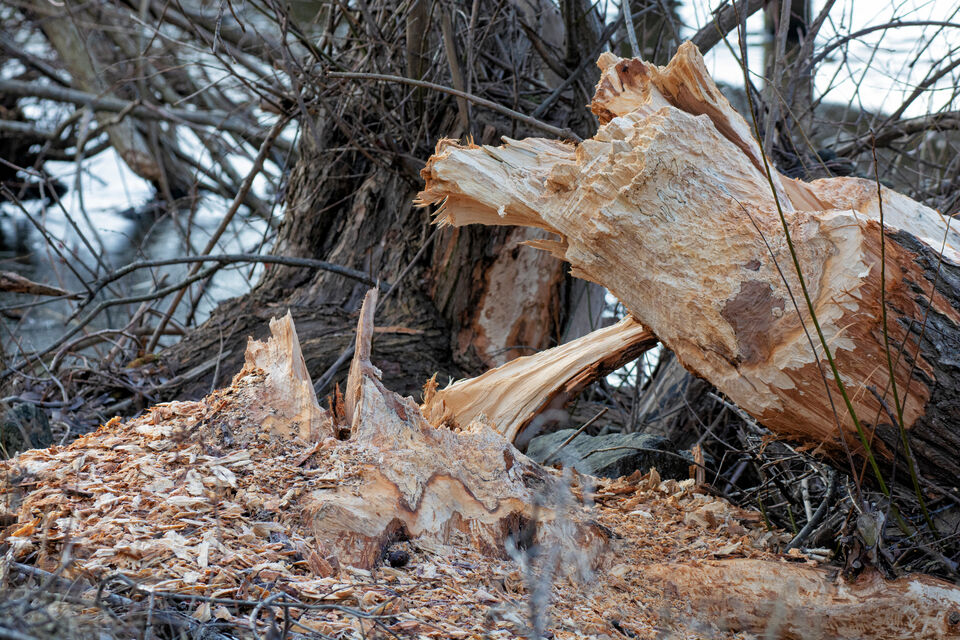 De visar på en imponerande energi, att fälla träd med bara tänderna.