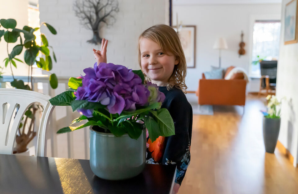 Barnbarnet Julienne levererar en "krya-på-dig" blomma