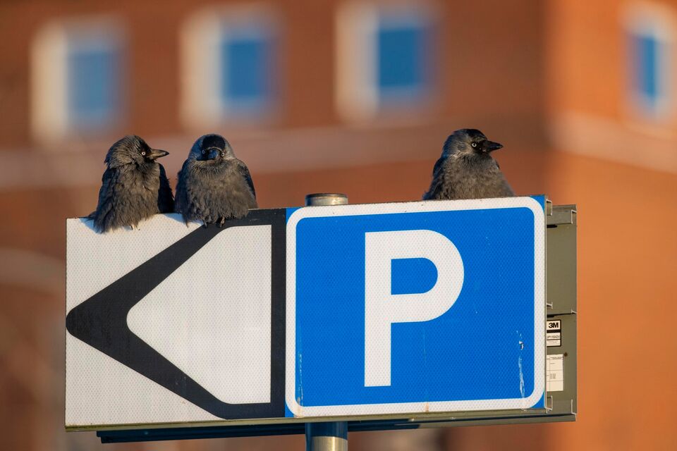 Tre kajor på en skylt och några änder blev dagens motiv vid ett kylslaget Kokpunkten i Västerås den 16 januari