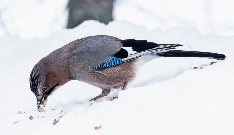 Ibland kommer det ett par nötskrikor till trädgården. De brukar vara skygga och flyger bort när jag närmar mig fönstret. Men idag var dom så pass fokuserade på nötterna som dom hittade i snön att jag ... läs mer..