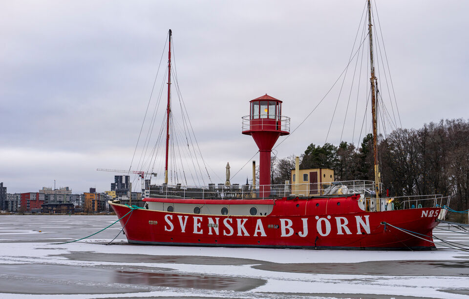 Fyrskeppet Svenska Björn ligger i hamn i Öster Mälarstrand i Västerås.