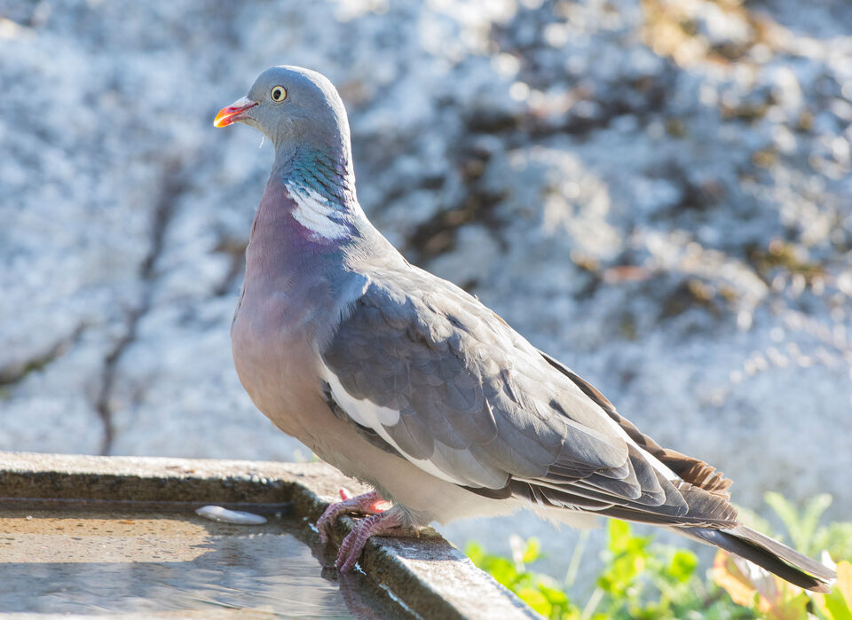 nr 1 - fågelbadet är populärt i sommarvärmen, en ringduva vågade sig fram till vattnet