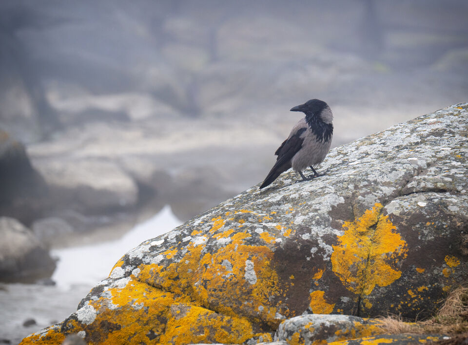 Några bilder från Apelviken när dimman drog in i Varberg idag. Det var ett väldigt lågt vattenstånd men klippor, stenar och ett ankare gör sig bra i diset. En kråka som kom flygande och landande ... läs mer..